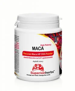 Témeř 5000 metrů nad mořem, na úpatí peruánských And, roste Maca – afrodisiakum, užívané dávnými Inky, s vysokou výživnou hodnotou. Kořen se pěstuje na vysokohorských planinách v Peru. Provedené studie ukazují, že hlíza obsahuje množství jódu, zinku, fosforu, železa, vitaminu B1, B2, C a E také vápník. Výzkumníci srovnávající kořen Maca s jinými produkty tvrdí, že je srovnatelná s asijským ženšenem. Superionherbs Maca HP OSS powder je produkt se vyrábí s čerstvě sklizené Macy bez sušení na slunci, proto aby se zachovaly všechny aktivní látky a nutriční prvky. Kořen Macy je zpracován speciálním procesem dehydratace, který zachovává účinné látky citlivé na vysoké teploty a dlouhodobé vystavení slunci. Díky tomu Maca HP OSS powder dosahuje koncentrace 0,8 % glukosinolátů, což je o 25 % více než běžné extraty z Macy.