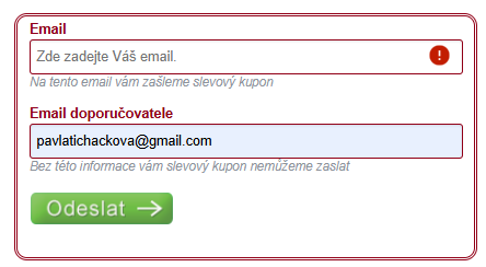 Vyplňte následující formulář a do prvního řádku uveďte svůj email (na ten dostanete slevový kupon). Do druhého řádku doplňte email pavlatichackova@gmail.com (bez toho nemůže být sleva poskytnuta).